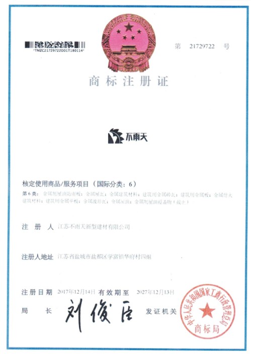 不雨天商標證書: